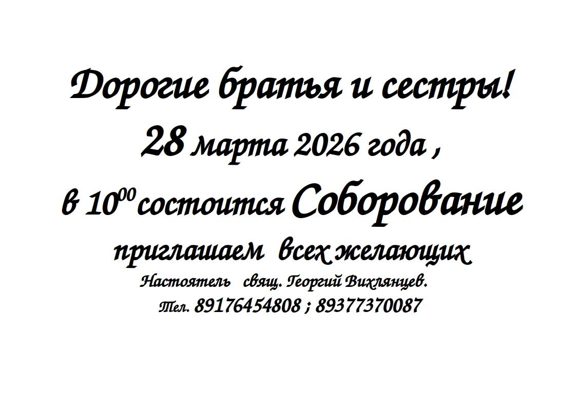 Соборование в 10 утра, желающие милости просим.